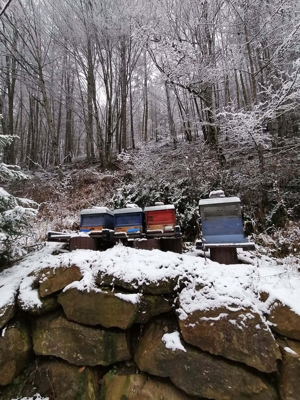 Die Imkerei im Bergwald besteht seit 2015. Inzwischen sind mehrere Bienenstände in der weitläufigen Bergregion hinzugekommen. Fernab von der konventionellen Landwirtschaft finden die Bienen optimale Bedingungen. Die harten Winter bringen robuste Bienenvölker und Königinnen hervor. Bei uns steht die Biene im Mittelpunkt.