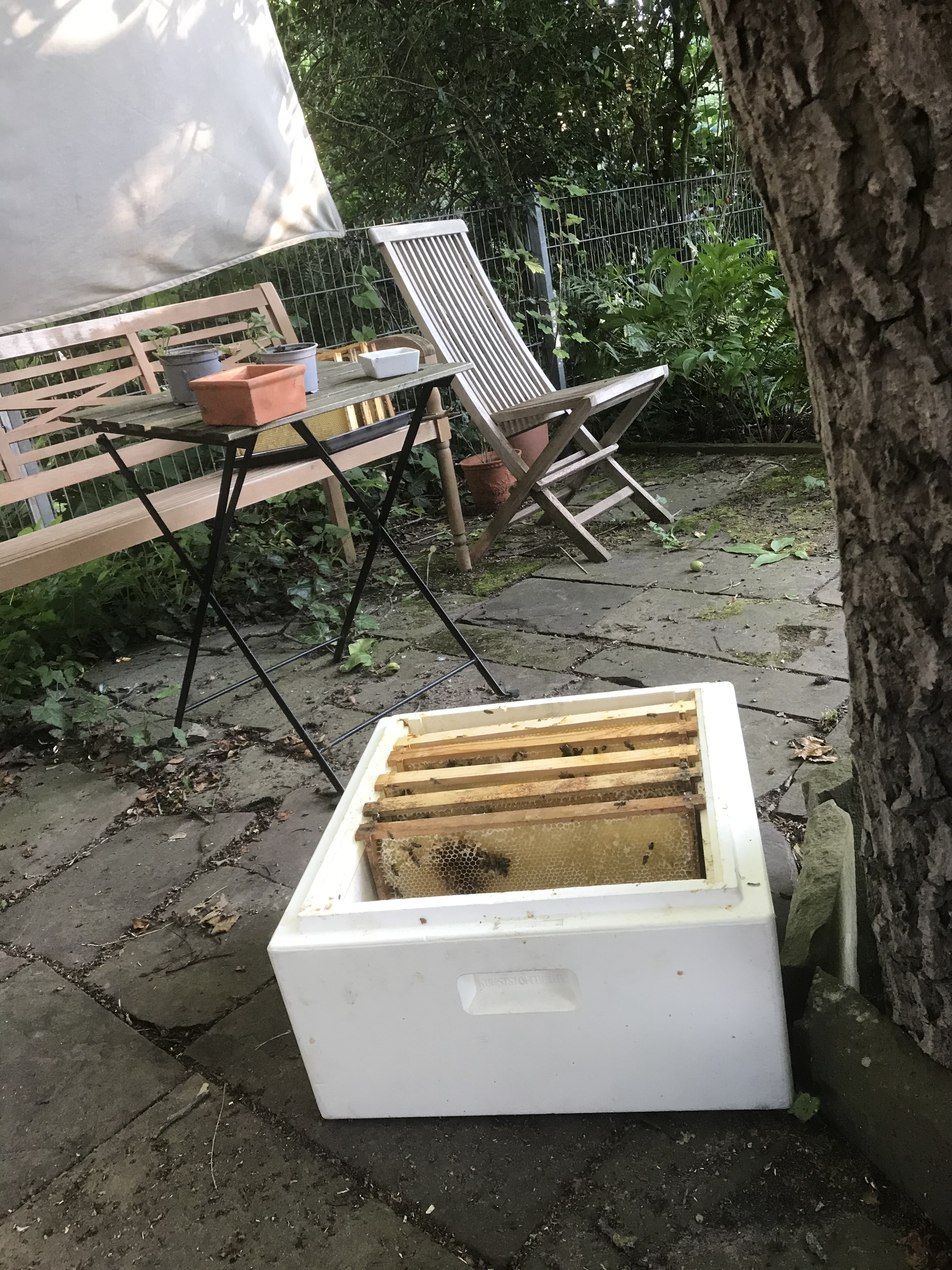 2007 wurde bei mir die chronische Krankheit MS diagnostiziert, 2015 wurde ich Rentner. Seit 2018 kann ich nicht mehr Laufen, mobil bin ich in der Wohnung mittels e-dreirad, im Garten mittels Allrad getriebenem Scooter. Zu den Bienen gebracht haben mich unbestäubte Obstbäume im Garten.