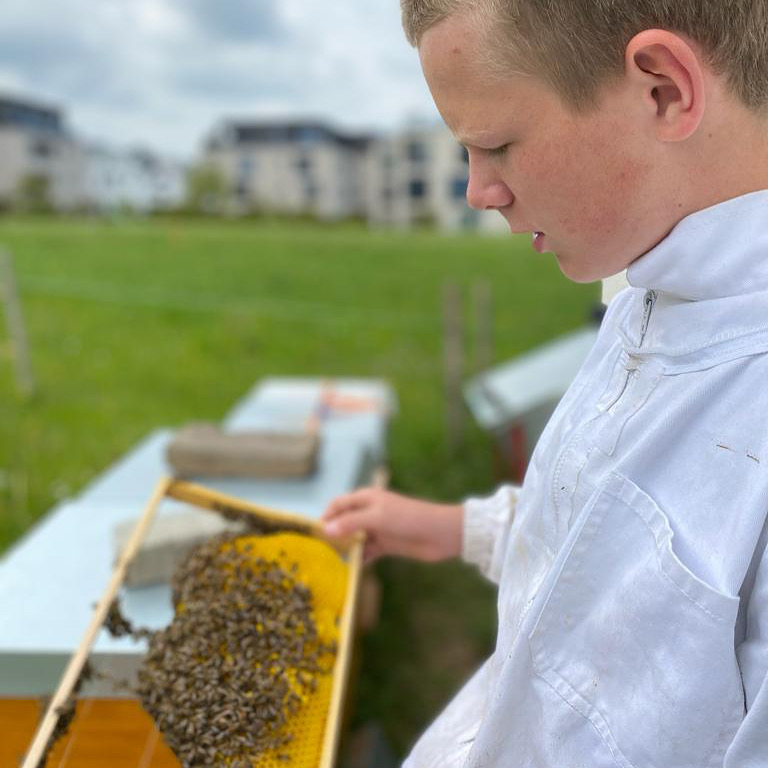 Ich bin Elias Vonmoos und bin 16 Jahre alt. Ich kam 2019 zur Imkerei, weil mich die Honigbiene sehr interessierte. Ich habe 2019 und 2020 einen Imkerkurs absolviert. Ich imkere ganz alleine, ohne jegliche Hilfe.