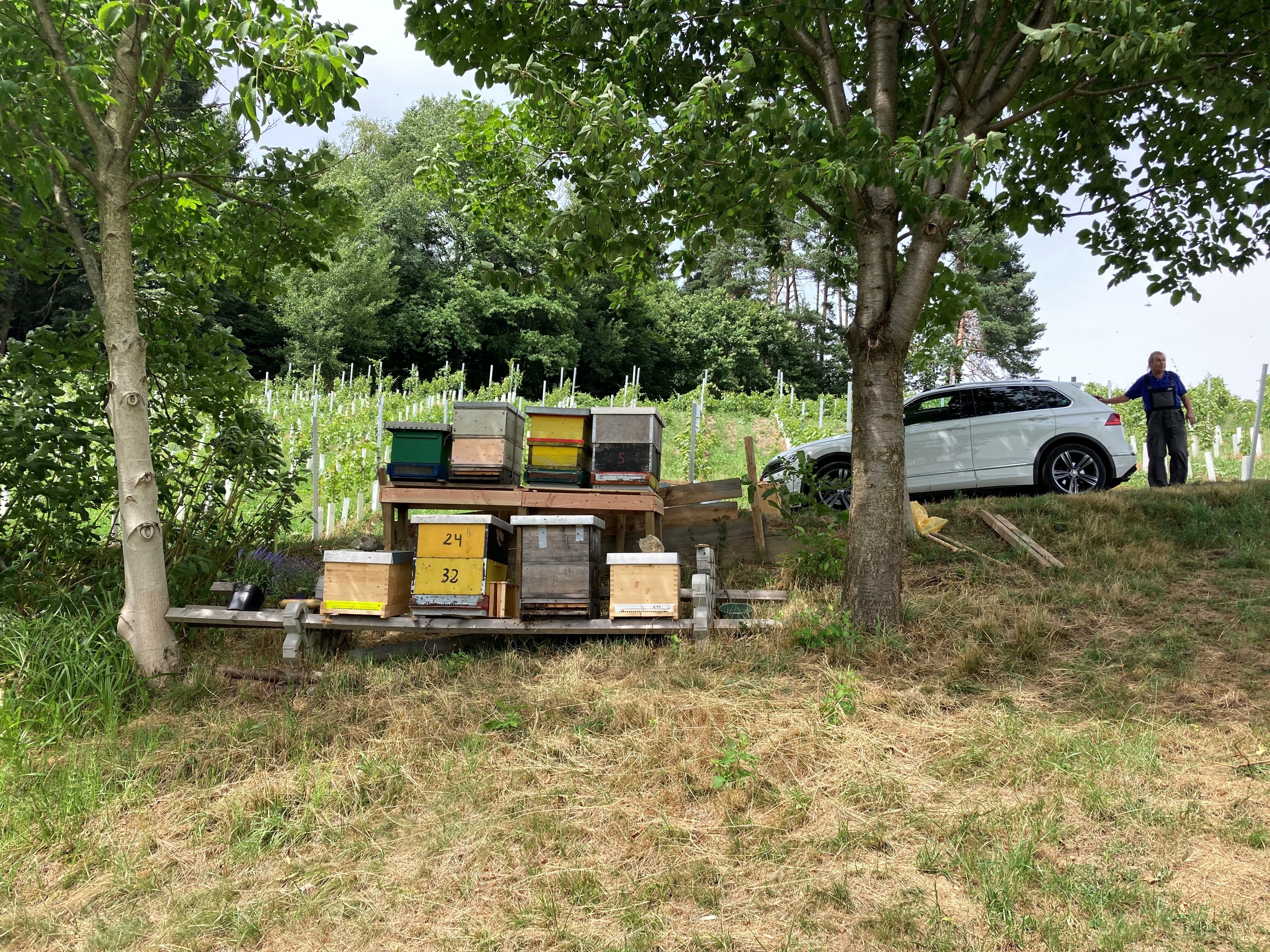 Meine Intention zu imkern kommt daher, dass ich es beruhigend finde, wenn man im Garten liegt und rund herum um einen blüht alles und man vernimmt das leise Summen der Bienen. Zusätzlich haben mich Bienen bereits seit der Jugend begleitet, da mein Opa bereits welche hatte.