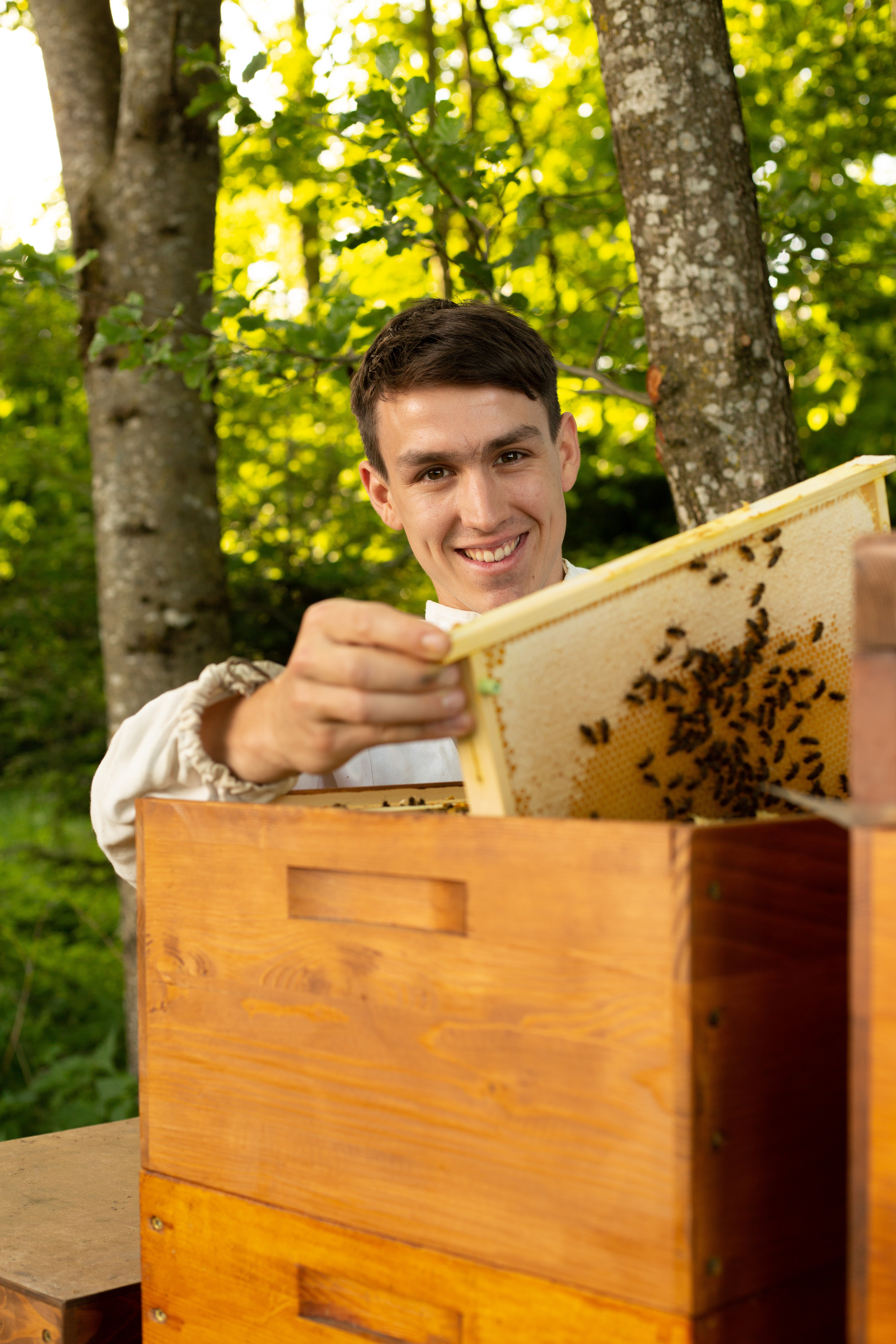 Hallo, ich bin Jonas Oberndorfer bin 24 Jahre alt und Imkerei bereits seit 9 Jahren. Ich betreibe meine Imkerei im Einheitsmaß und lege meinen Fokus auf die Völkervermehrung und Leistungszucht.