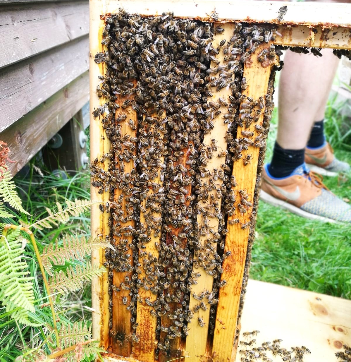 Ich habe einen Kurs in Bochum über ein Jahr bei Frau Dr. Pia Aumeier gemacht und dort das Handwerk erlernt. Desweiteren erfolgt ein reger Austausch mit dem Imkerverein Dortmund-West, in dem ich auch Mitglied bin. Ich habe mich neben meinen Hühnern und meinem Garten schon länger für Bienen und Insekten interessiert. Die Nachrichten über den Schwund an bestäubenden Insekten hat mir dann schlussendlich den Impuls gegeben mich näher mit Bienen zu beschäftigen. Letztes Jahr bin ich dann mit einem Wirtschaftsvolk gestartet und habe davon erfolgreich vier Ableger gebildet.