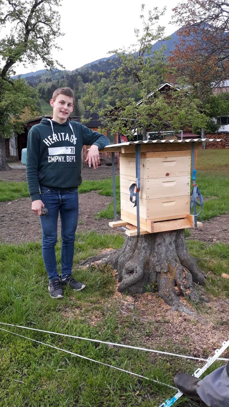 Durch einen Imkereikurs in der Schule, sowie durch meinen derzeitigen Bienen-Pate habe ich das Imkern gelernt. Ich besuche derzeit die vierte Klasse der HLA in Hohenems. Dort habe ich einen Bienenkurs besucht, in dem ich alles nötige rund um die Biene und das Imkern gelernt habe. Ebenfalls habe ich dabei meinen ersten eigenen Bienenstock aus Holz gebaut.