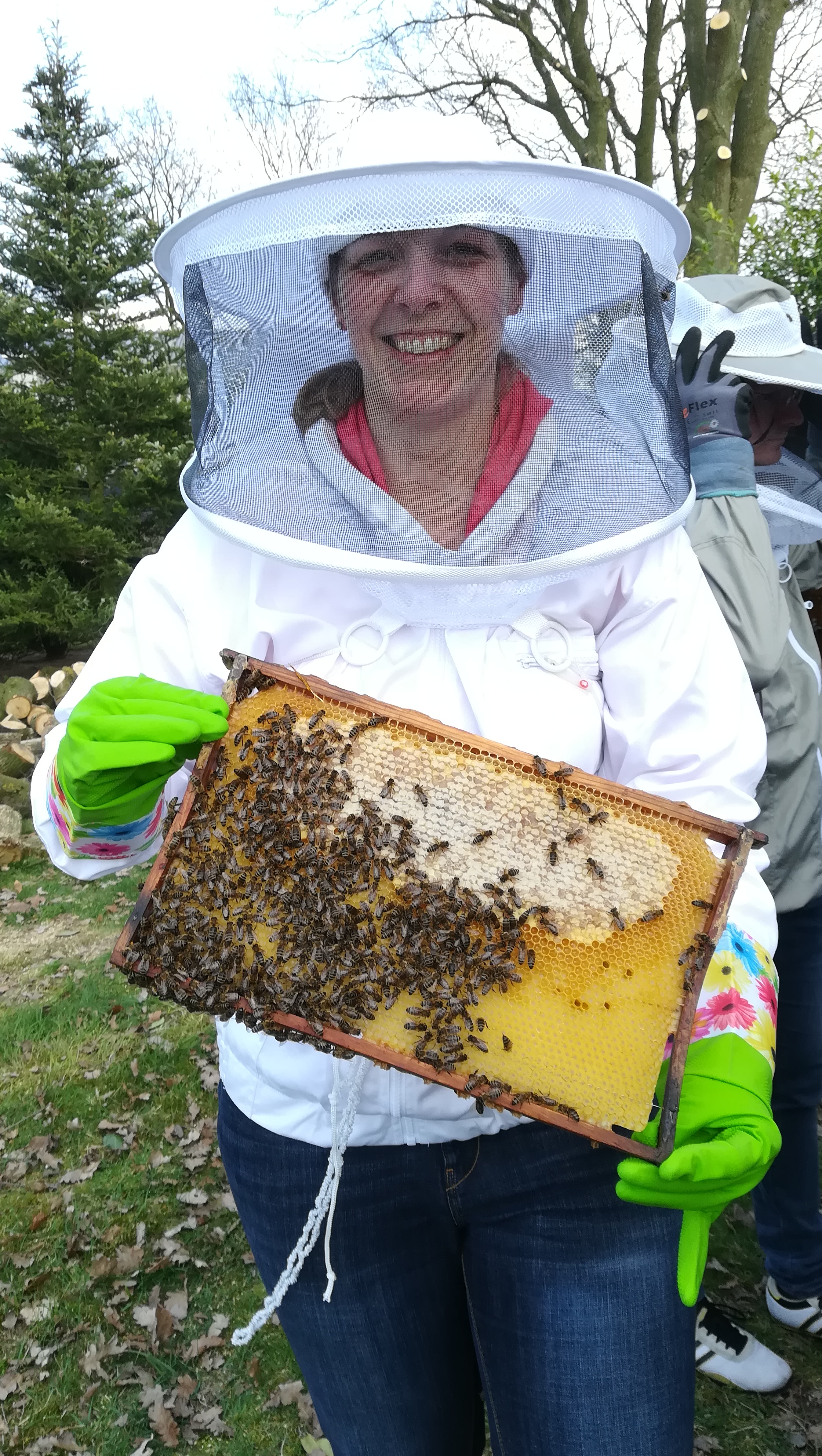 “Mich fasziniert die Komplexität und das Zusammenspiel des Volkes. Der Naturschutz ist mir wichtig. Ich bin Erzieherin in einer Kita und wir überlegen auch im Kindergarten zu Imkern wenn wir die Eltern überzeugen können. Mitarbeiter, Chefin und Vorgesetzte stehen dahinder.”