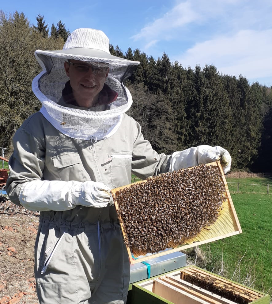 “Die Biene als solches ein sehr faszinierendes Tier. Die getaktete Arbeitsteilung im Volk, die wechselnden Aufgaben einer Biene im Laufe ihres Lebens vom Schlupf bis zum ableben oder auch die allgemeine Entwicklung und das Zusammenspiel des gesamten Volkes. Zudem sind Sie neben der Honigproduktion gerade durch ihre Bestäubungsleistung wichtig für die Natur und damit auch für uns.”