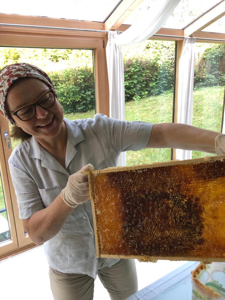 “Ich finde die Arbeit am Bienenstock sehr meditativ...Stress vertragen meine Mädels gar nicht. Mich fasziniert dieser strenge Rhythmus über alle Jahreszeiten hinweg und ich habe gelernt, dass 9 Tage nicht 10 Tage sind ;)”