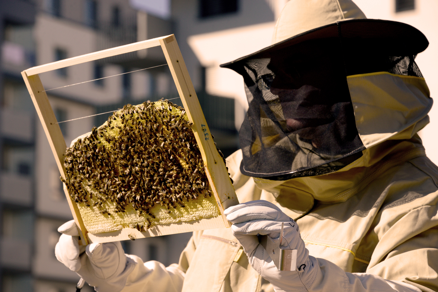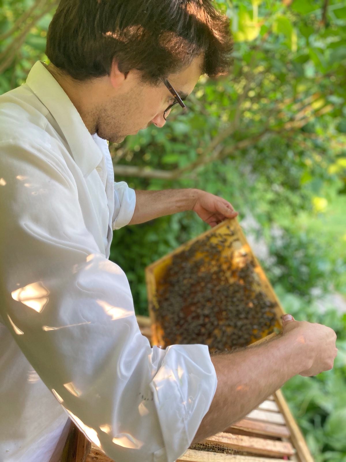 “Den Bienen bei der Arbeit zuzuschauen und zu sehen was diese kleinen Wesen alles schaffen können ist einfach unglaublich. Wenn ich mit den Bienen arbeite, beruhigt das, denn einen schöneren Ausgleich zum stressigen Alltag gibt es eigentlich gar nicht.”
