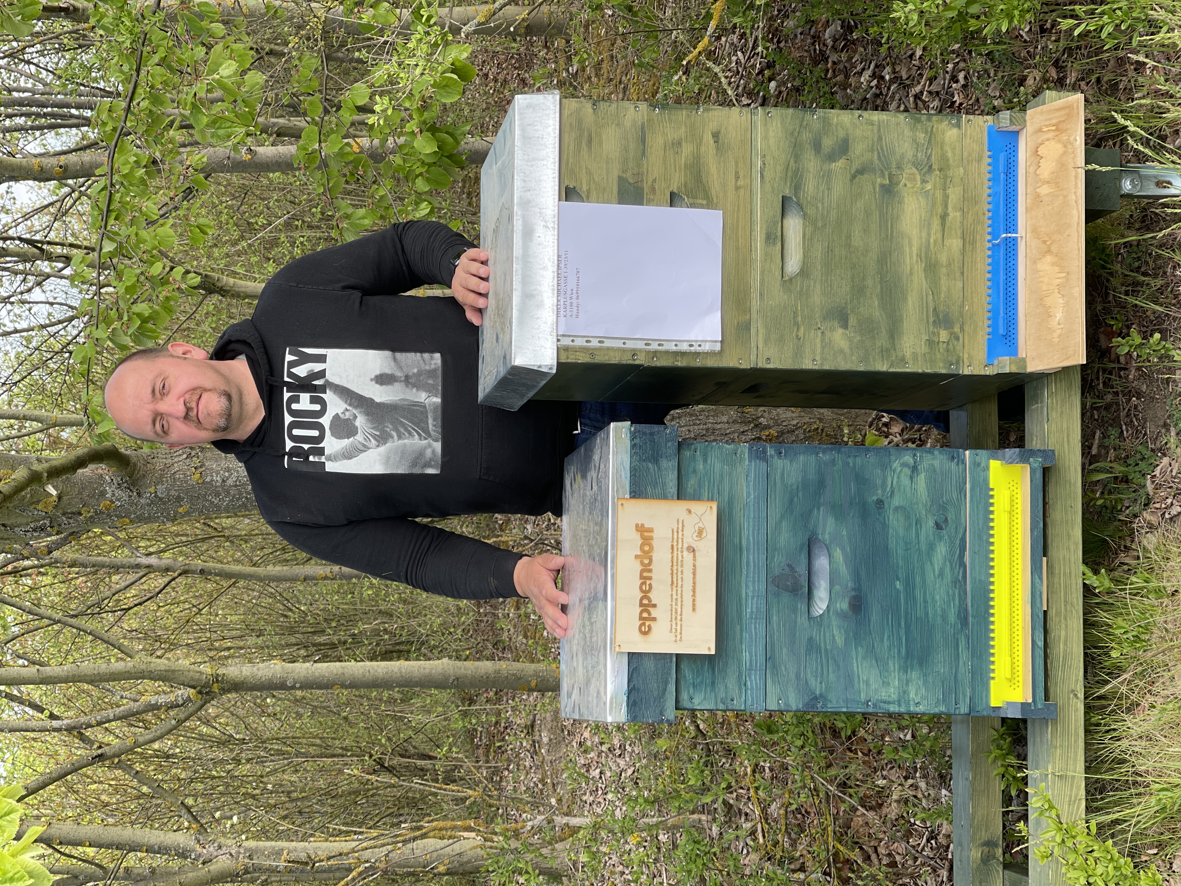 “Ich bin Josef Bacher aus Floridsdorf und habe 2013 begonnen, zu imkern. Ich mache schon lange Computerarbeit, genauer gesagt Grafikdesign und Videos. Gleichzeitig ist aber auch die Sehnsucht gewachsen, irgendetwas in der Natur zu machen, im Grünen mit der Natur. Also ich war auf der Suche nach einem Garten, um zu garteln oder einem anderen Hobby. Auf Facebook habe ich dann gesehen, dass ein Freund von mir ein Foto gepostet hat von seinen neuen Bienen am Balkon. Das hat mir total getaugt. Ich habe begonnen, darüber zu recherchieren, nachzulesen und auch bald meinen ersten Imkerkurs gebucht in der Wiener Imkerschule. Dann hat es mich gepackt, das Bienenfieber, und seither nicht mehr losgelassen. Ich habe mit zwei Völkern begonnen, bald waren es zehn Völker, dann 30. Heute sind es um die 50 Völker. Danach habe ich an der Imkerschule Warth in Niederösterreich meine Ausbildung zum Imker-Facharbeiter absolviert und eine konkrete Betriebsweise kennengelernt an der ich mich orientieren konnte. In den folgenden Jahren hab ich dann mein Ding draus gemacht. Das ist wichtig für die Neulinge. Wenn du eine Richtung kennenlernst, kannst du danach selbst entscheiden, wie und was du machen möchtest. Schon in meinem zweiten Imkerjahr habe ich dann auch mit der Königinnezucht begonnen und bin inzwischen Mitglied des Zuchtverbands ZAC (Zentrale Arbeitsgemeinschaft d. Carnicazüchter) und habe mein mit Hans Fuchs eine Zuchtgemeinschaft gegründet unter dem Namen "Sklenar Pro". Es steckt sehr viel Leidenschaft drin und sehr viel Liebe.”