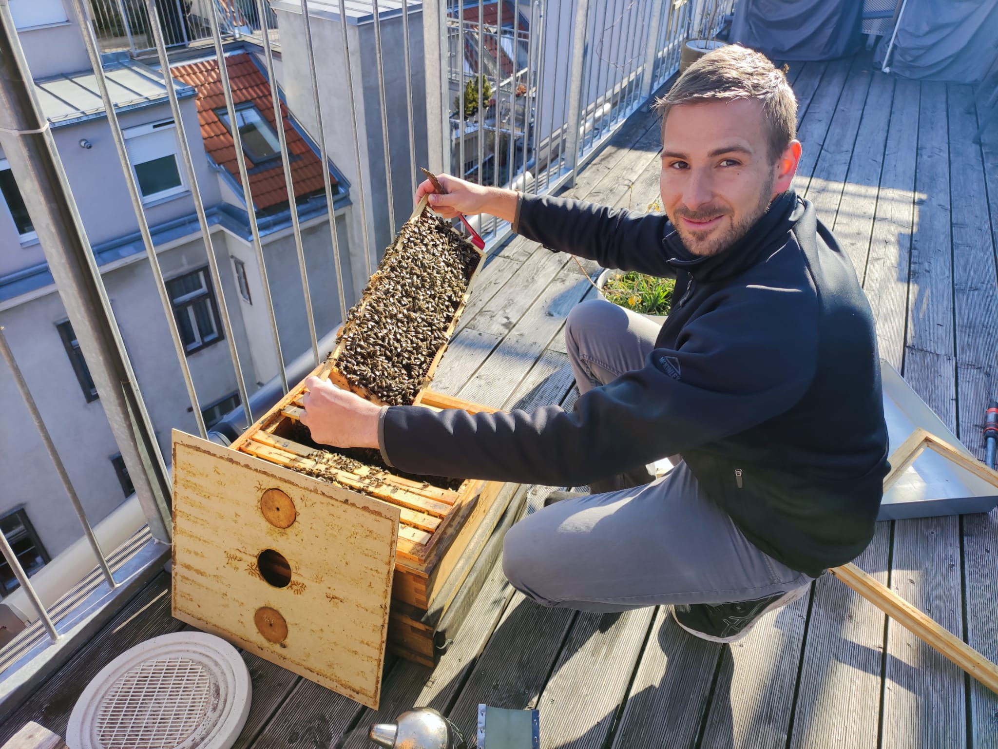 “Es fasziniert mich wie ruhig Bienenvölker sind. Meine Völker stehen im dicht bebauten Gebiet im Zentrum von Wien. Trotz anfänglicher Skepsis sind mittlerweile alle Nachbarn große Bienenfans und erfreuen sich täglich am regen Treiben.”