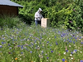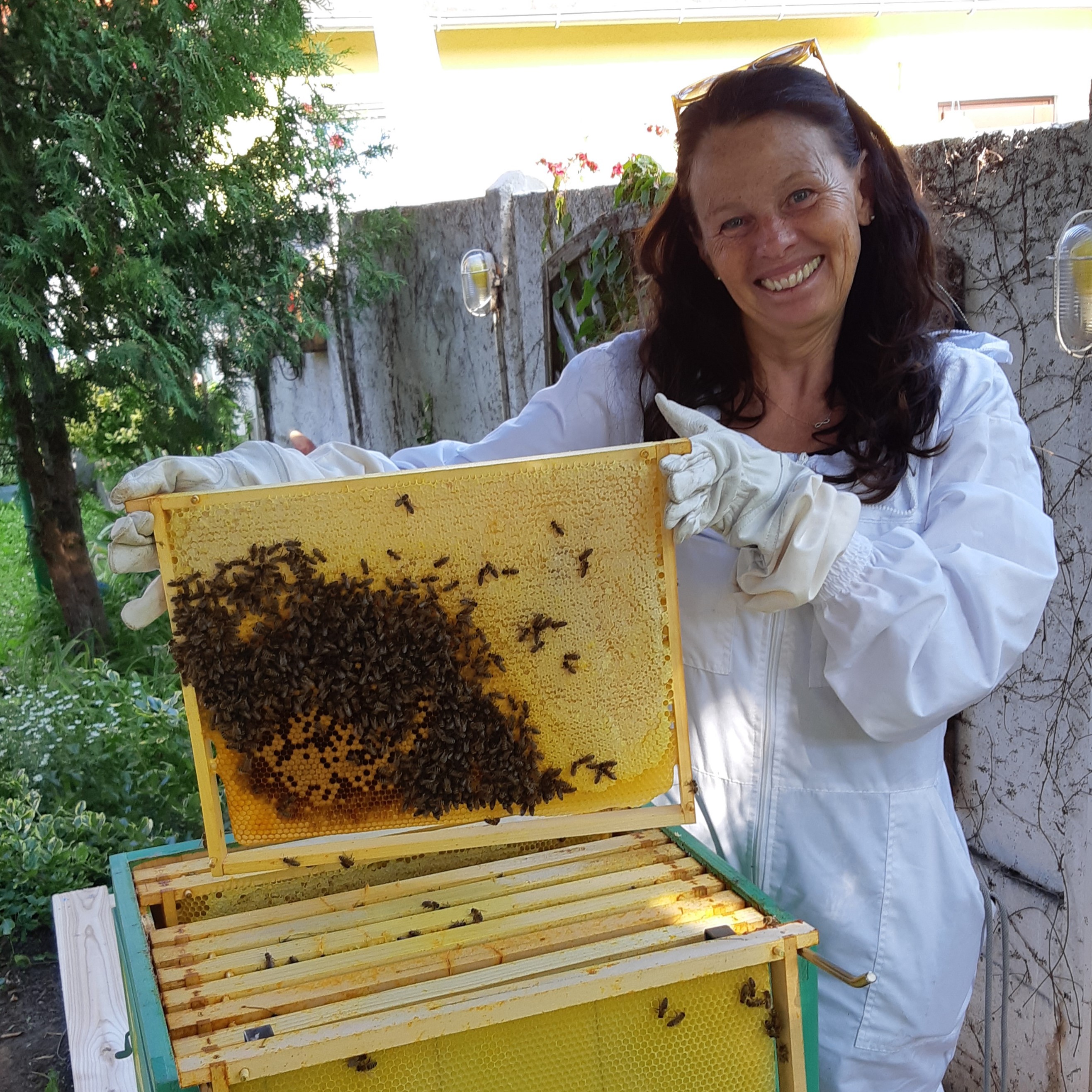 “Aufgewachsen mit Landwirtschaft, faszinieren mich Bienen mit ihrem komplexen Organ als "Bienenstaat". Darüber hinaus ist mir ihr unschätzbarer Wert als Bestäuberin für die Nahrungsmittelversorgung bewusst und möchte meinen Teil als leidenschaftliche Hobby-Imkerin- und Gärtnerin für eine lebenswerte Umwelt beitragen. Das Handwerk als Imkerin erlerne ich von einem sehr geduldigen und erfahrenen Imker, dessen 5 Bienenvölker in unserem großen Garten eine Heimat gefunden haben. So lerne ich von ihm Schritt für Schritt die faszinierende Welt der Bienen kennen und bin begeistert - so wie in meiner Kindheit - in der Nähe der Bienen in meine Garten-Oase leben zu dürfen!”