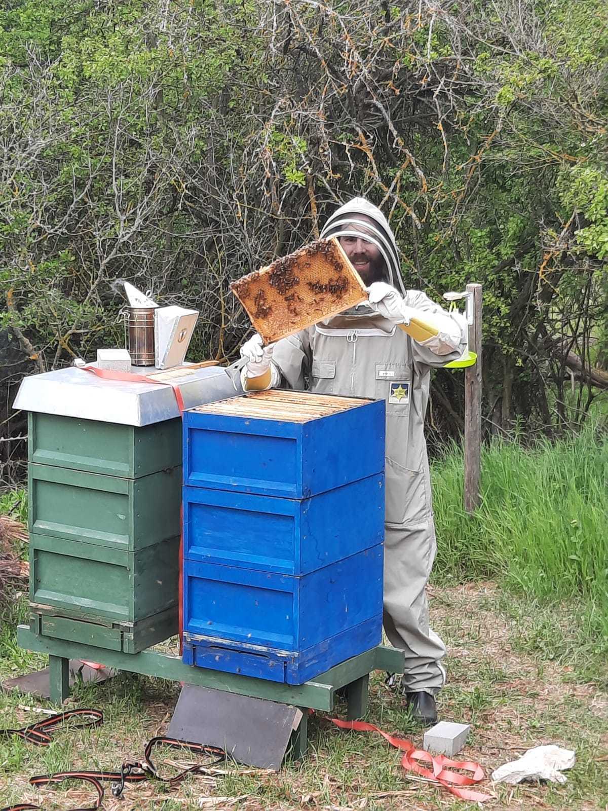 “Als diplomierter Biologe und Lehrer haben mich die Bienen als Organismen, die sich staatlich organisieren, schon immer fasziniert. Die biologischen Vorhänge im Stock stellen herausragende Leistungen dieser kleinen Tiere dar und lassen mich immer wieder vor ihrer Schwarmintelligenz erstaunen. Seit einem Jahr habe ich nun meinen lange gegeben Traum erfüllt und bin in die Praxis gegangen. Nun halte ich mit größter Freude vier Bienenvölker.”