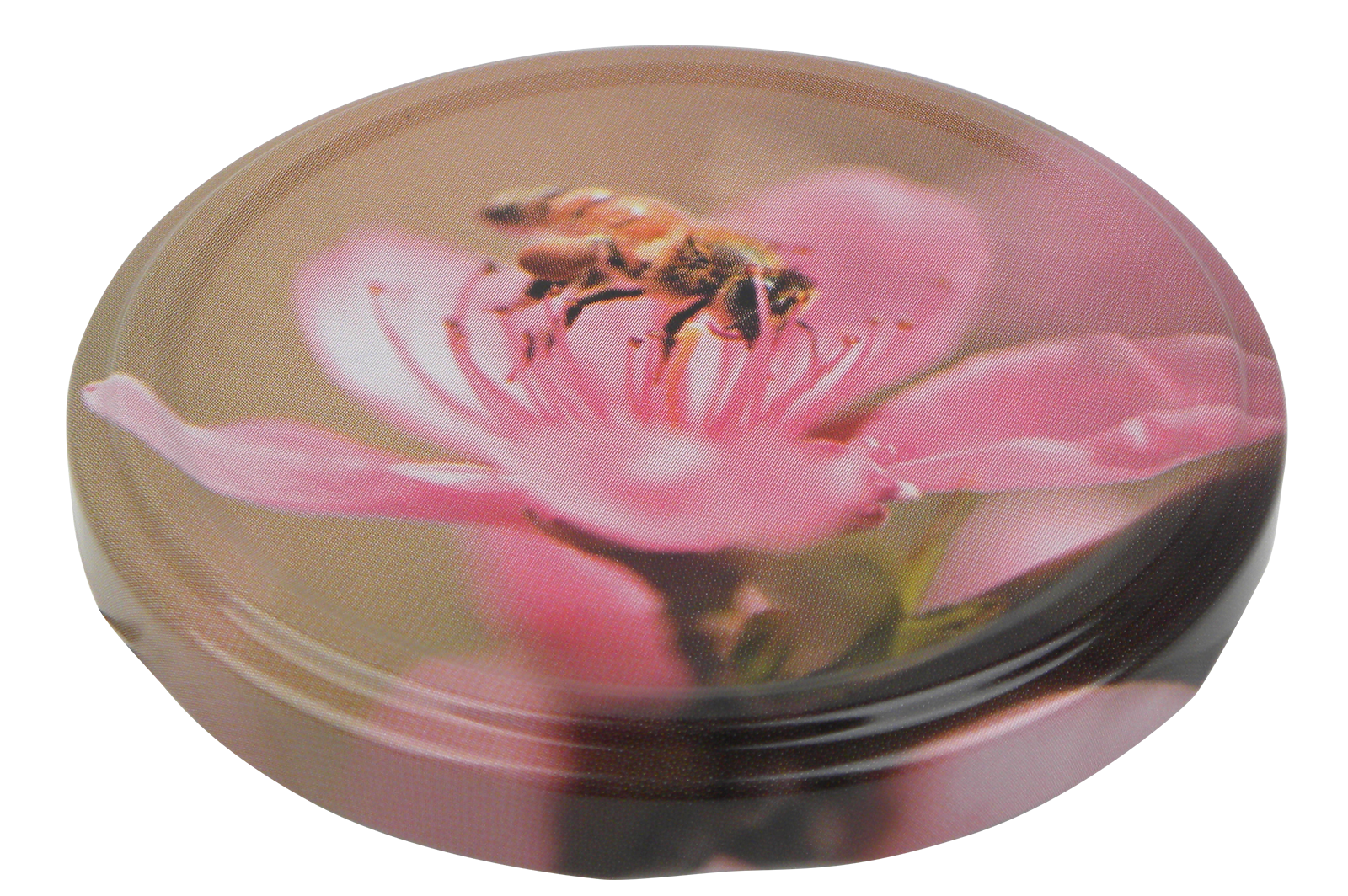 Deckel für Einkoch- oder Honiggläser TO82Ø 82mm10 StückDeckel mit Fotomotiv ″Biene & rosa Blüte″