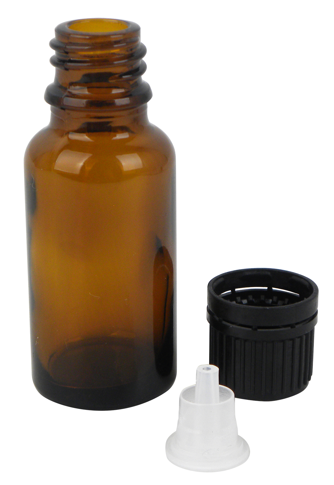 Apothekerfläschchen aus Braunglas inklusive Schraubverschluss mit Tropfeinsatz.Der Verschluss muss fest aufgeschraubt werden, sodass der Sicherungsring über den unteren Wulst des Glasfläschchens ragt. Beim wieder Öffnen reist dieser ab.Geeignet für alkoholische, wässrige Flüssigkeiten, für Essenzen, Extrakte, kolloidales Silber, u. Ä.Gewicht des Glaskörpers: ca. 35 g Durchmesser: ca. 28,5 mm Höhe mit Verschluss: ca. 78 mm Mündung: GL-18 Schraubverschluss: schwarz Tropfeinsatz: U2, langsam tropfend für max. 5 Tropfen pro Gabe Randtropfer: Flasche zum Tropfen schräg (ca. 120°) halten